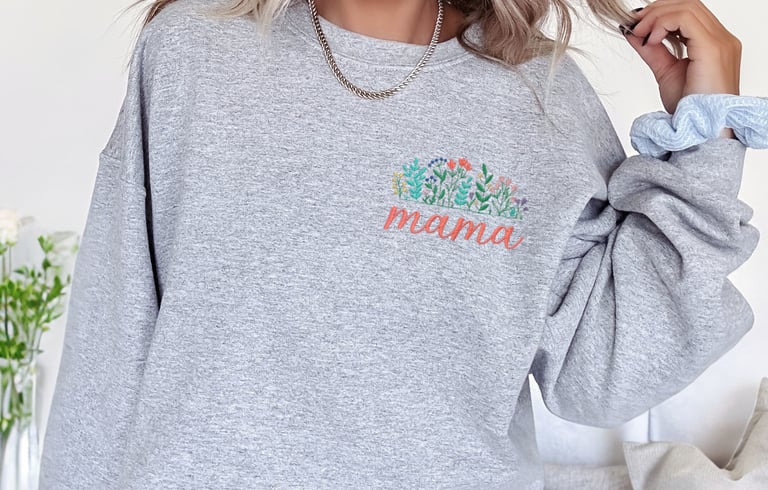 Our Embroidered Sweatshirt features delicate stitched blooms on ultra-soft fabric — a cozy, meaningful piece she’ll love wearing again and again. Perfect for moms, grandmothers, or anyone who deserves a little extra love. 💕